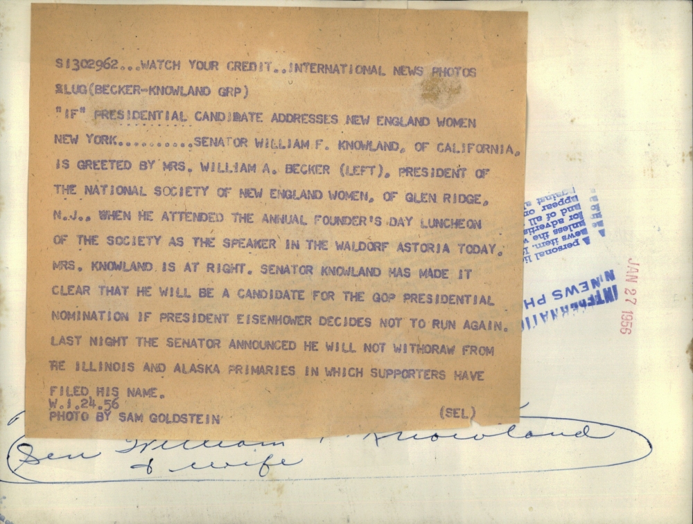 1956 Press Photo Senator William Knowland - RSL85917