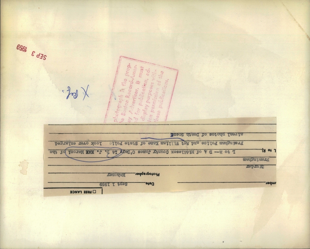 Photo measures 10 x 8 inches. Photo is dated 09-01-1959.