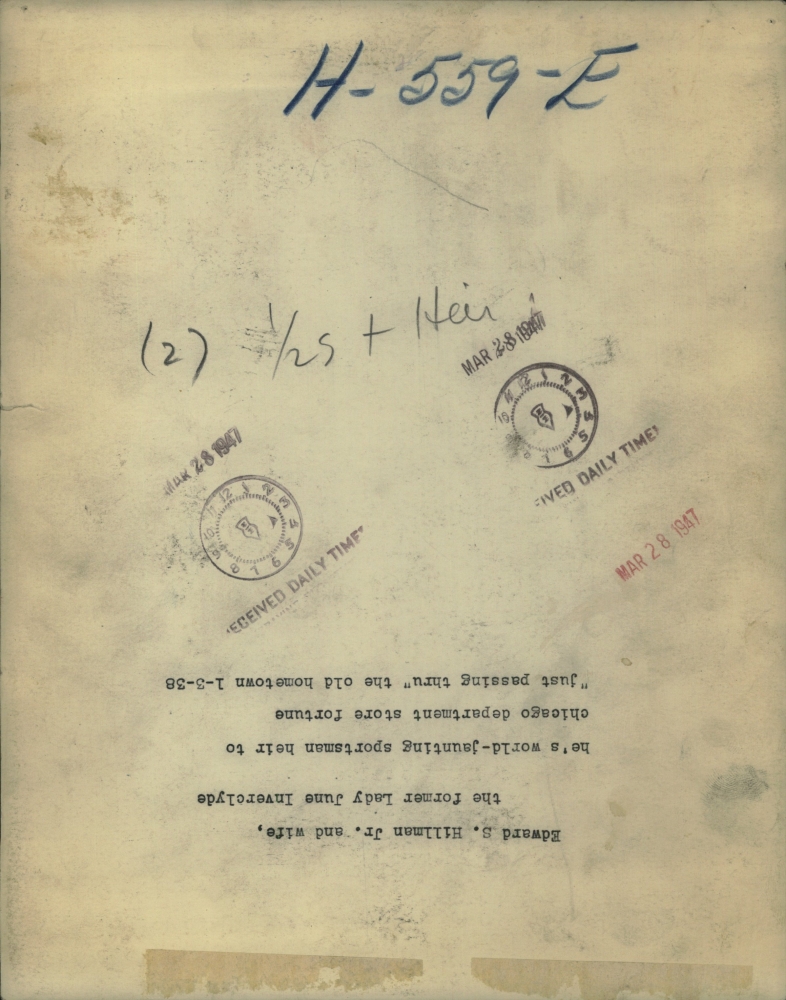 Edward S.Hillman Jr.and wife the former Lady June Inverclyde he's world jaunting sportsman heir to Chicago department.