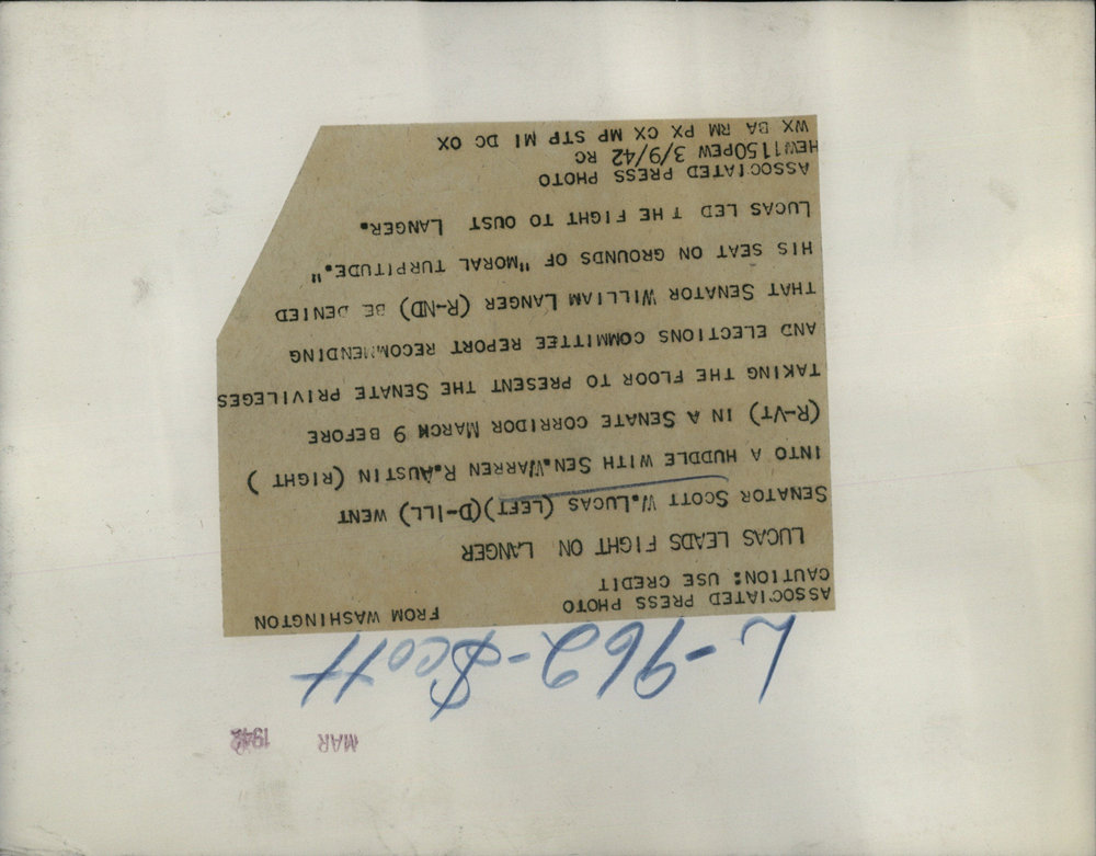 1942 Press Photo Senator Scott Lucas huddle Warren Austin Corridor Langer Snap