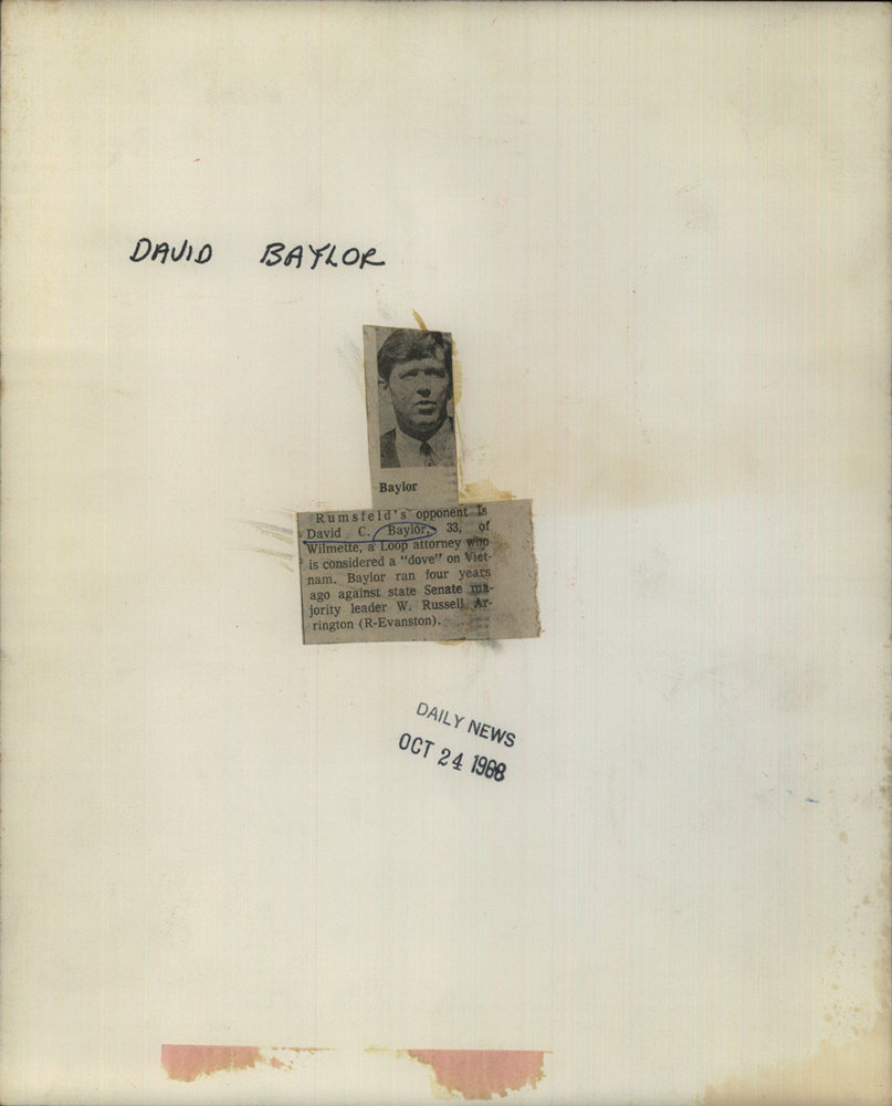 Rumsfeld opponent is David C Baylor, of Wilmette, aloop attorney.