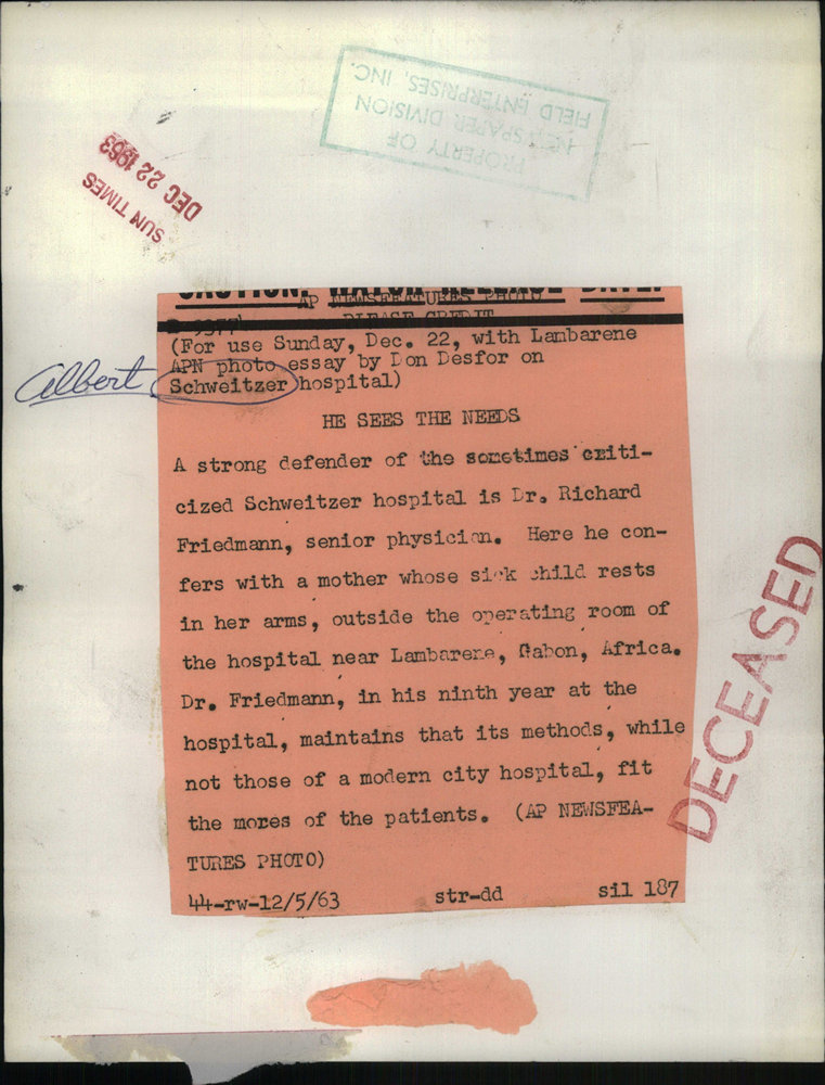 1963 Press Photo Dr. Richard Friedmann,Senior Physician