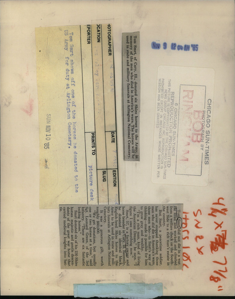 1985 Press Photo Tom Smrt horse US Army Arlington Cemetary factory owner Cary