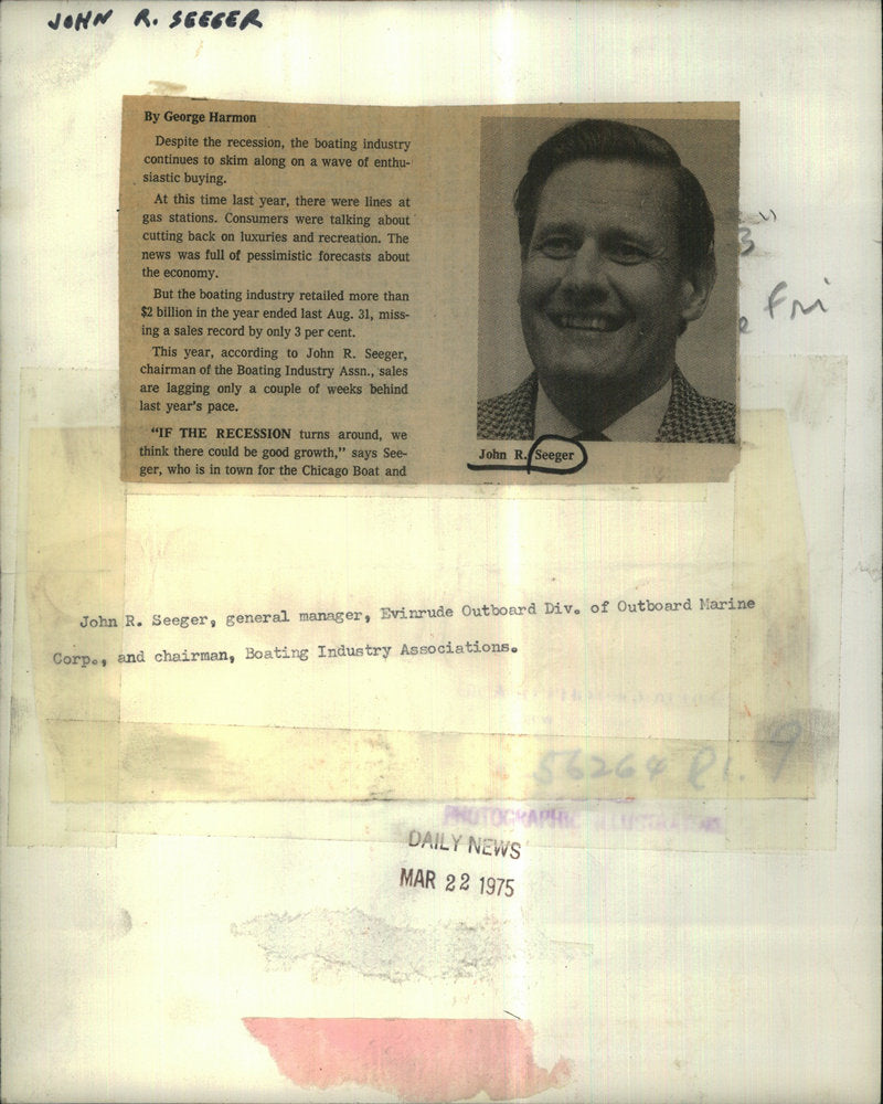 1975 Press Photo John Seeger Recession Boating Industry Association Marine Corp