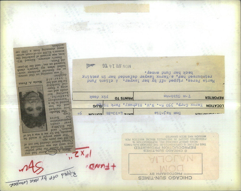 1986 Press Photo Maria Perez Fund Money Ripped Off Lawyer