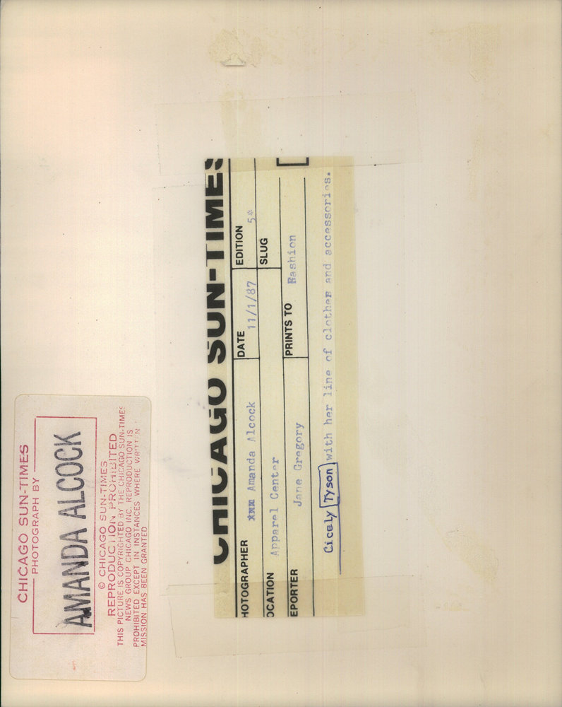 1987 Press Photo Cicely Tyson Clothes accessories Photographer Amanda Alcock