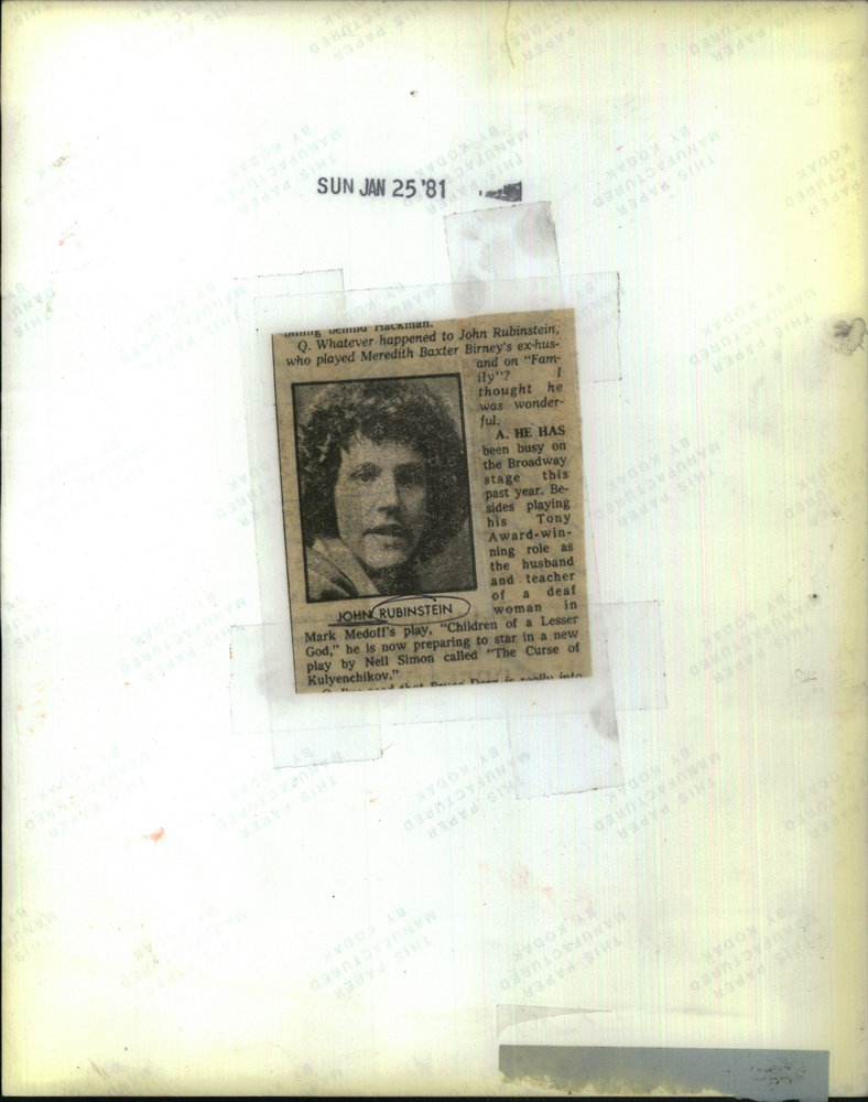 1981 Press Photo JOHN RUBINSTEIN AMERICAN FILM BROADWAY ACTOR COMPOSER DIRECTOR