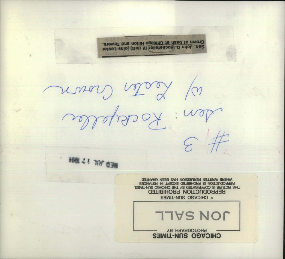 SEN. JOHN D. ROCKEFELLER IV AND LESTER CROWN AT BASH AT CHICAGO HILTON AND TOWERS. John Davison "Jay" Rockefeller IV (born June 18, 1937) is the senio