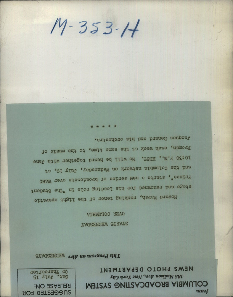Howard Marsh, ranking tenor of light opera.
