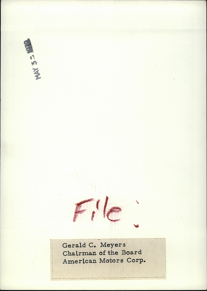 Caption: Gerald C Meyers is the chairman of the board of American Motors Corp.. Additional Information: