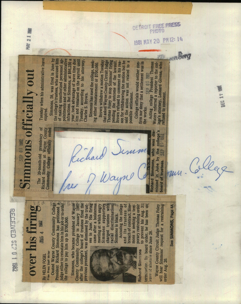 Caption: Ousted Wayne county community college president Richard Simmons has petitioned a judge either to reinstate him in his job or to order the col