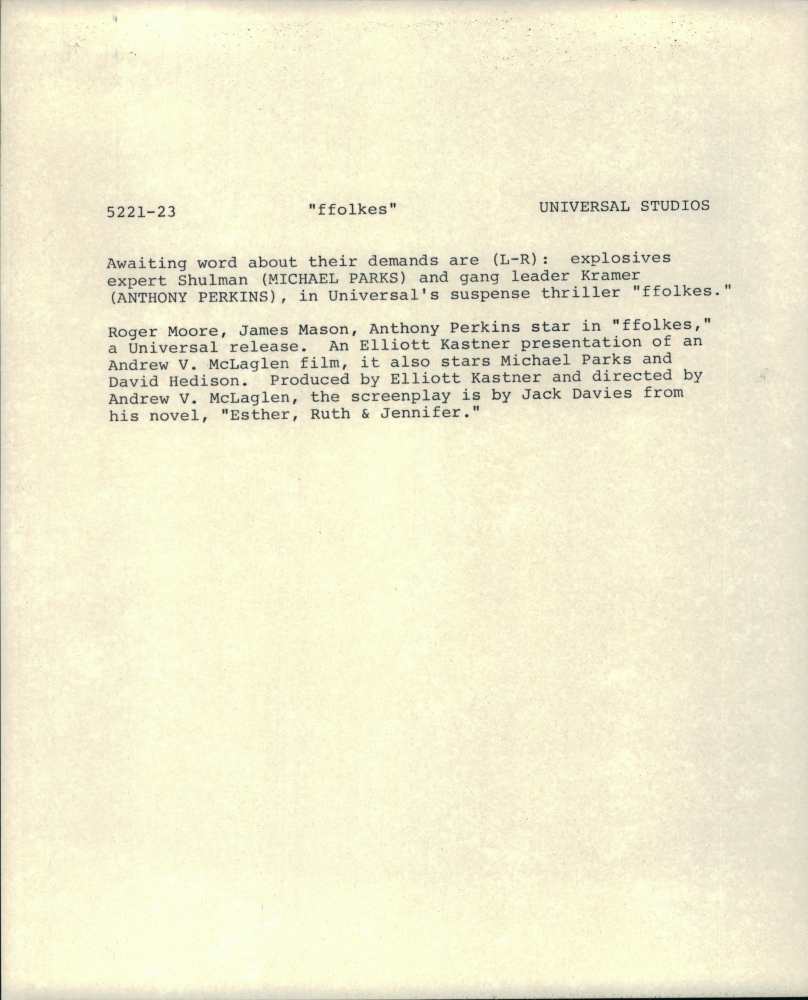 1979 Press Photo Michael Parks, Anthony Perkins "ffolkes"