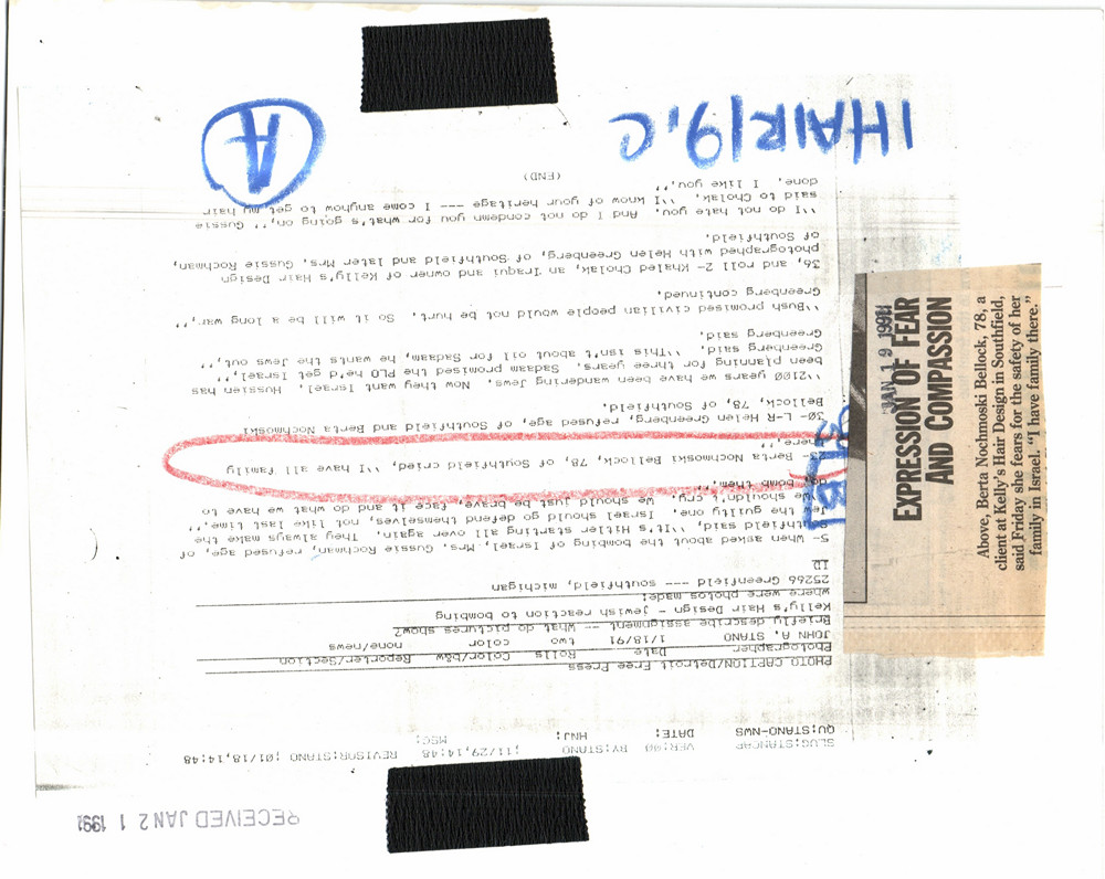 Caption: Berta Nochmoski cries: I have all familie there.