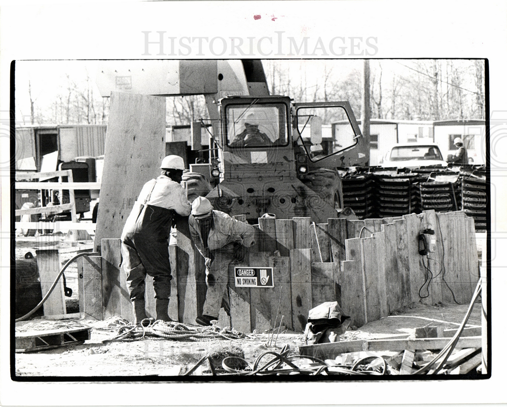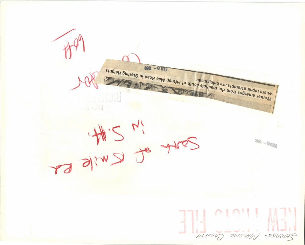 Caption: Worker emerges from the manhole of south of 15 Mile Road in Sterling Heights where repair attempts are being made.
