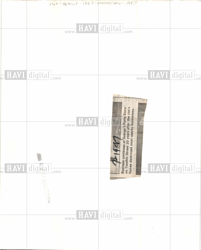 Caption: Business continues at George's Party Store on Twelfth Street 20 years after the riot's flames destroyed most nearby businesses.