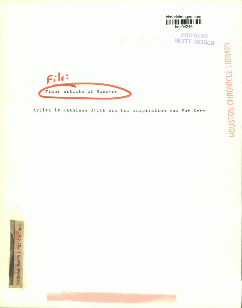 1988 Press Photo Kathleen Smith's Pat Kerr doll at Fiber Artists of Houston.