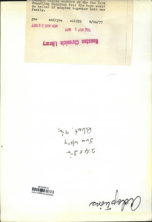 Adoptions Boy to be adopted Social Workers at the New York Foundling Hospital feel the boys would do better if adopted together into one family.