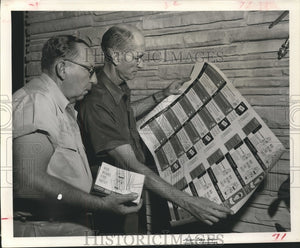 1958 Press Photo Houstonians Check Oil Progress Week To Win A Savings Bond