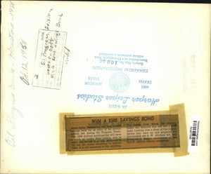 Oil Progress Week 1958 Win a $500 Savings Bond Some lucky Houstonians will win a $500 savings bond for an entry at his service station left during Oil Progress Week. The 1500 stations participating will have a stock of Lucky Quiz folders and to enter the contest it is only necessary to fill out the folder according to instructions. It is not necessary to buy anything. The dealer from whom the winning folder was obtained also will win a $500 bond. Looking over a sheet of the folders before they are cut and prepared for distribution are A.W. Alleman, left, and Raymond C. Spears, cochairman of the O.P.W. service station committee.