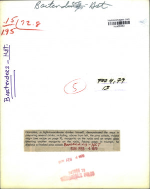 1979 Press Photo Bartender Gonzalez Displays a Finished Pina Colada - hca08383