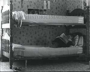 1973 Press Photo Child reads on his stacking beds - hca08932