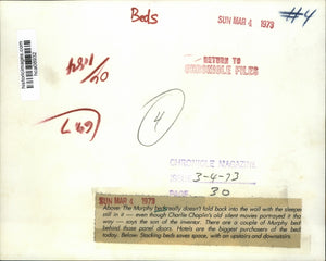 Stacking Beds save space, with an upstairs and downstairs. Other Picture: The Murphy beds really doesn't fold back into the wall with the sleeper still in it - even though the Charlie Chaplin's old silent movies portrayed it that way - says the son of the inventor. There are a couple Murphy beds behind those panel doors. Hotels are the biggest purchasers of the bed today.
