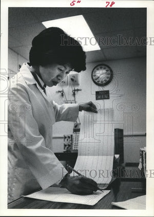 1978 Press Photo Dr. Masako Okawa Charts Sleep Activity at Baylor College Lab
