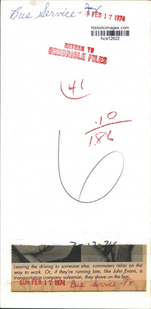 Bus Service, Houston, Texas. Leaving the driving to someone else, commuters relax on the way to work. Or, if they're running late, like John Evans, a transportation company salesman, they shave on the bus.