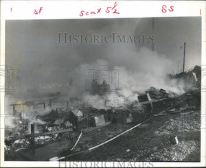 1975 Press Photo Tank Truck Unloading Gasoline in Cleveland, Texas Exploded.
