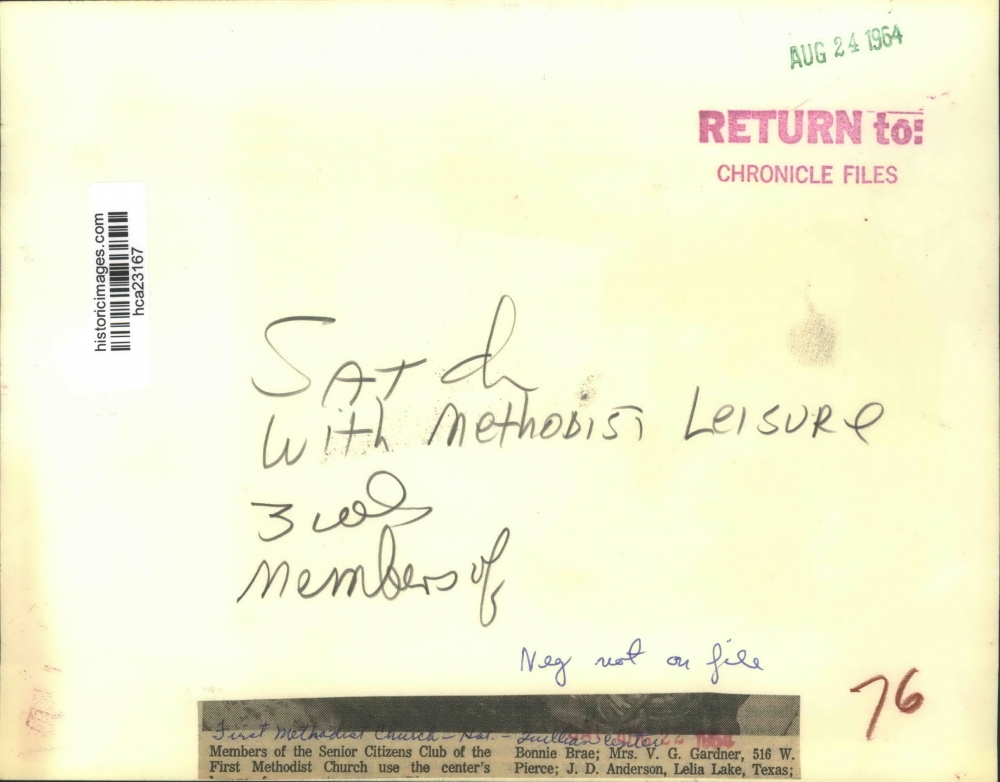 Members of the Senior Citizens club of the First Methodist Church in Houston use the Quillian Center's....(unreadable)... Bonnie Brae; Mrs. V. G. Gard…