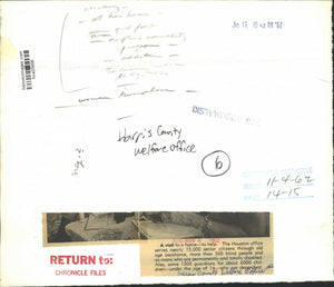 A visit to a home - to help. The Houston office serves nearly 15,000 senior citizens through old age assistance, more than 500 blind people and as many who are permanently and totally disabled. Also, some 1300 guardians for about 6,000 children - under the age of 14 - who are dependent. Harris County Welfare Office. Houston, Texas.