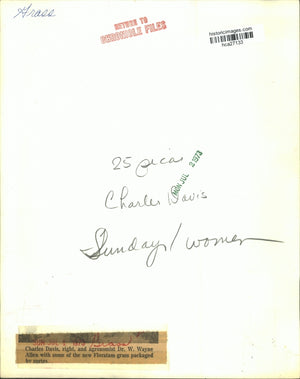 Charles Davis, right, and agronomist Dr. W. Wayne Allen with some of the new Floratam grass packaged by sprigs. Grass