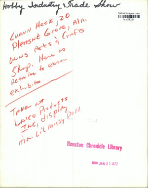 1977 Press Photo Luann Heck holds doll at Hobby Industry Trade Show in Houston