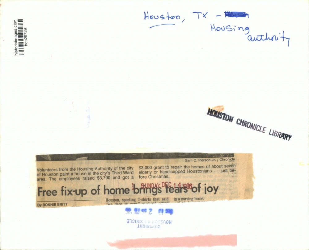 1986 Press Photo Houston Housing Authority volunteers paint house of elderly