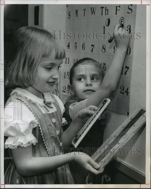 1962 Press Photo Bonner Elem. students Susan Scott and Diane Sanders in Houston
