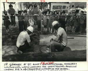 1980 Press Photo Houston's St. Anne's School students watch utility workers