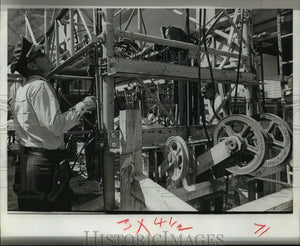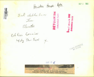 1965 Press Photo Houston police officer investigates elevator scaffold