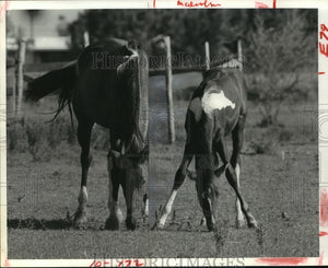 1980 Press Photo Mother and colt graze in field in Harris County, Texas