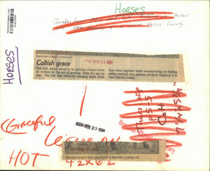 This colt, which seems to be getting a lesson from its mother on the art of grazing, finds it's not so easy. The colt had difficulty keeping those front legs close together while concentrating on finding edible morsels in a pasture off State Highway 6 in west Harris County, Texas. Horses.