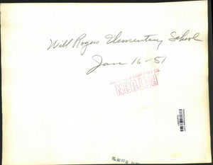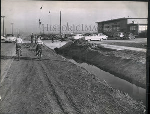 1950 Press Photo Students ride bike by Will Rogers Elementary School - hca33961