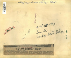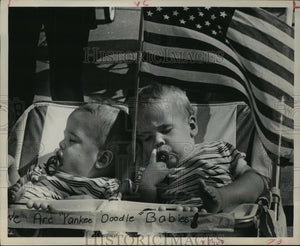 The annual Ashford Forest Civic Club's children's paradade, complete with patriotic decorations and costumes to mark the nation's birthday, was too much for these two Yankee Doodle babies. Sean, at left, and Steven, are the 10-month-old twins of Mr. and Mrs. B. E. O'Brien, 1303 Shannon Valley. Independence Day, Houston, Texas - Fourth (4th) of July.