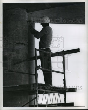 1968 Press Photo Construction worker on scaffolding at Houston airport