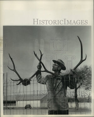 1963 Press Photo Simon Burg holds elk horns in Johnson City, Texas - hca36736