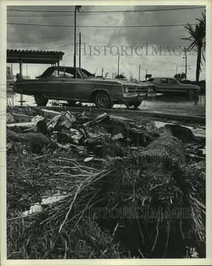 1967 Press Photo Damaged cars after Hurricane Beulah in Brownsville, Texas