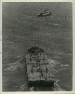 1963 Press Photo Aerial view of tug and barge in Gulf during Hurricane Cindy