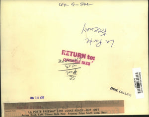 La Porte Freeway link looks ready - but isn't. Access road, left, curves onto new freeway from South Loop, rear. La Porte Freeway near completion in Houston, Texas. Freeways. Construction.