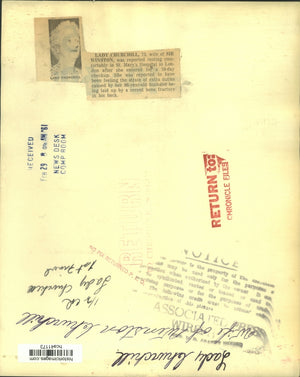 Lady Churchill accepts 1953 Nobel prize for literature on behalf of her husband, Sir Winston Churchill, from King Gustaf during ceremony in Concert hall on Stockholm, Sweden, yesterday. The British Prime Minister's trip to Bermuda for the Big Three conference prevented his being present to accept the award. Lady Churchill, 75, wife of Sir Winston, was reported resting comfortable in St. Mary's Hospital in London after she entered for a 10-day checkup. She was reported to have been feeling the strain of extra duties caused by her 86-year-old husband being laid up by a recent bone fracture in his back.