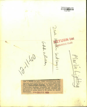 1960 Press Photo Out door room lighting at Marlin Lighting Showcase in Hosuton