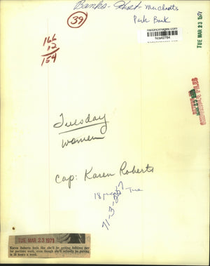 1971 Press Photo Karen Roberts with Merchants Park Bank in Houston - hca42784