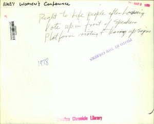 Right to Life people after losing vote up in front of speaker platform, rioting and tearing up signs. National Women's Conference in Houston, Texas.